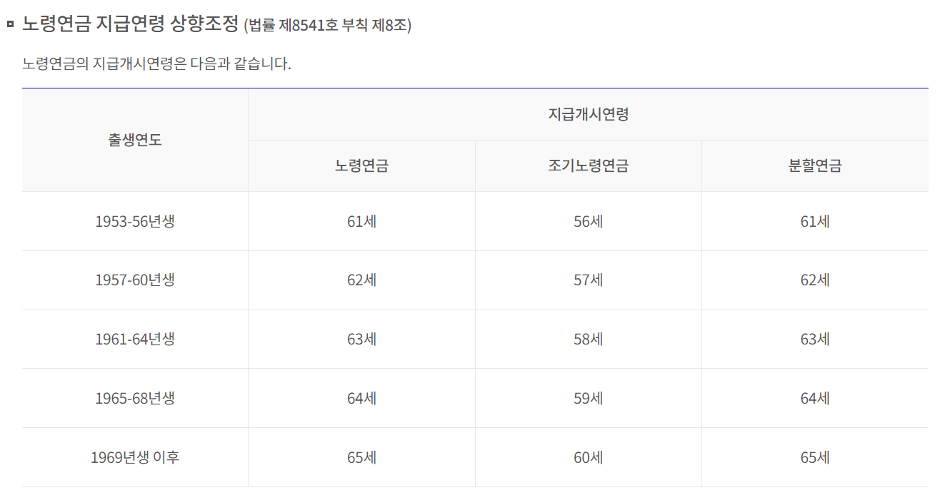 이는 출생년도에 따라서 수령가능한 나이가 달라집니다.