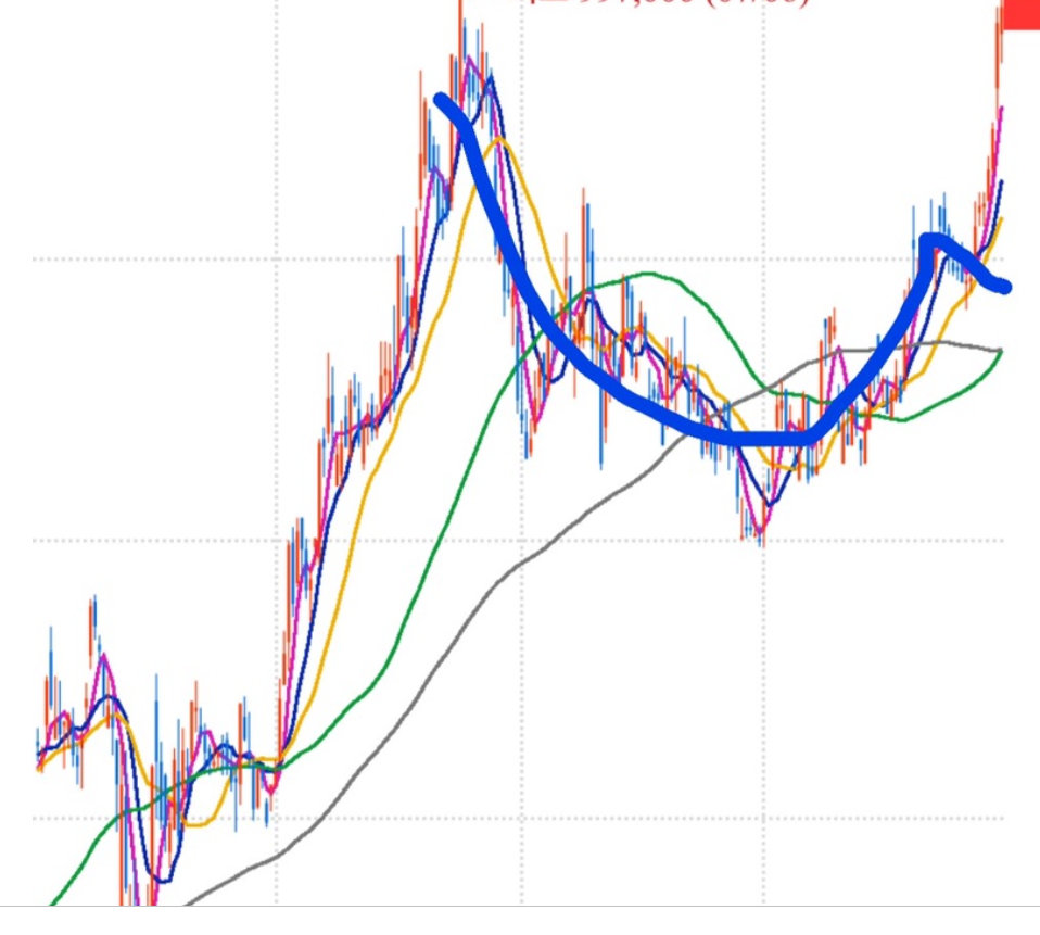 마치 컵의 손잡이처럼 말입니다. 그때가 우리의 매수 타이밍이 되는 것입니다.