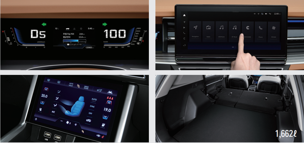 또한 2열까지 폴딩 시 1,662L 까지 늘어나 대용량 적재가 가능한 뛰어난 공간활용도 가능합니다.