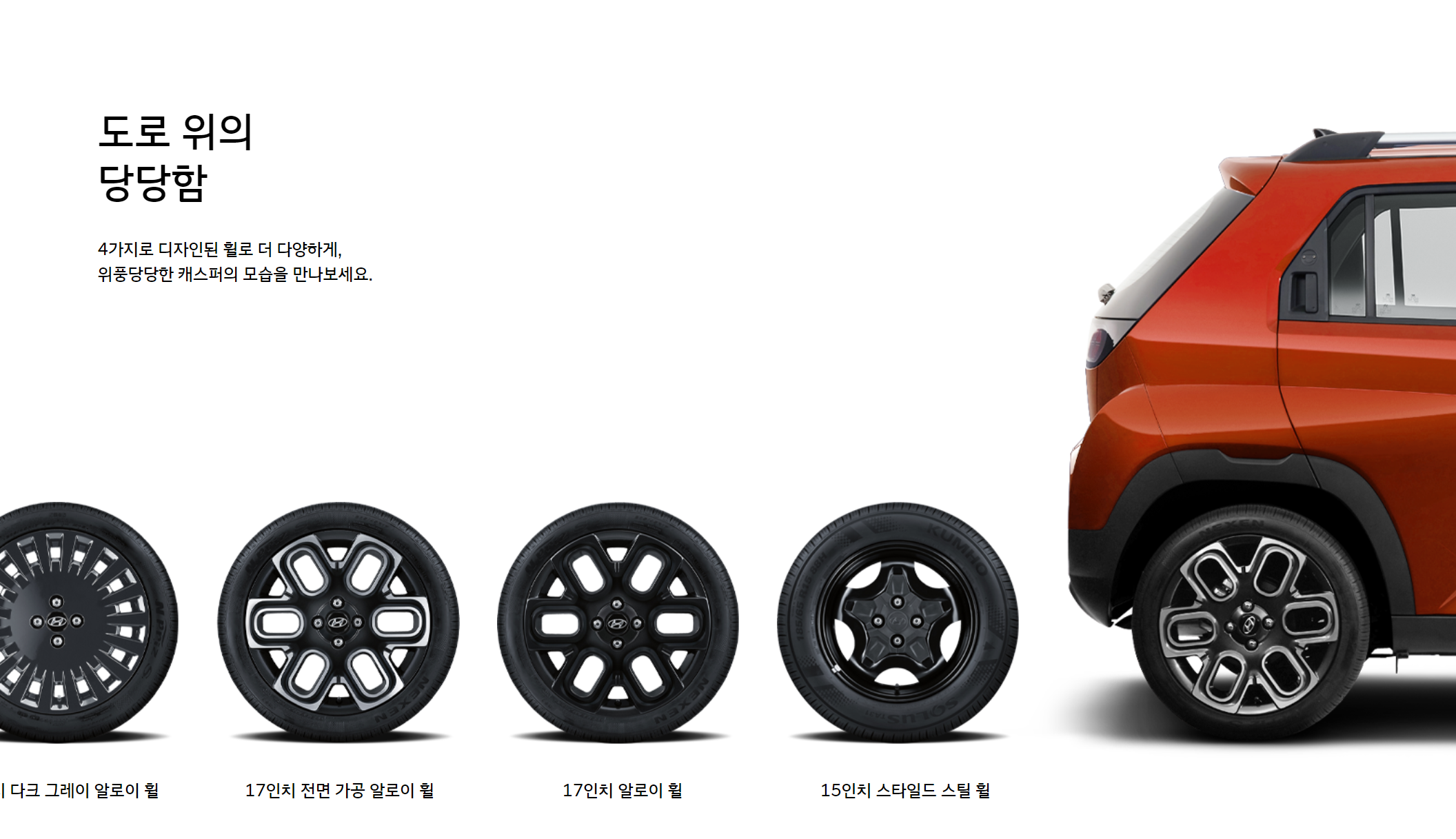 파워트레인은 '캐스퍼'와 '캐스퍼 벤'하고의 차이는 없으므로 파워트레인별으로 구분하여 말씀드리겠습니다.